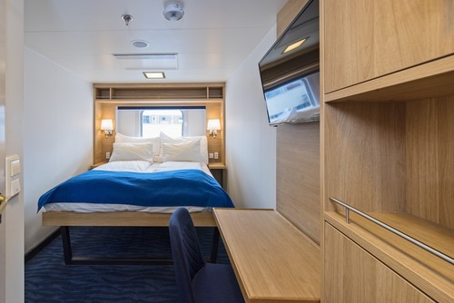 These standard outside cabins for up to two people on the middle decks have separate beds, one of which converts into a sofa, and bathrooms with shower/WC.