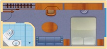 These comfortably appointed staterooms provide a choice of two twin beds or a queen size bed, a seating area with a sofa, coordinated chair and cocktail table, a spacious closet and built in dresser and writing desk. As well as a marble lined bathroom with multi jet shower.Yacht Club Staterooms on Decks 3 and 4 feature a large picture window while Yacht Club Staterooms on Deck 2 have two nautical windows.The size of the Yacht Club staterooms on deck 2, 3 and 4 are identical other than this difference in the windows.